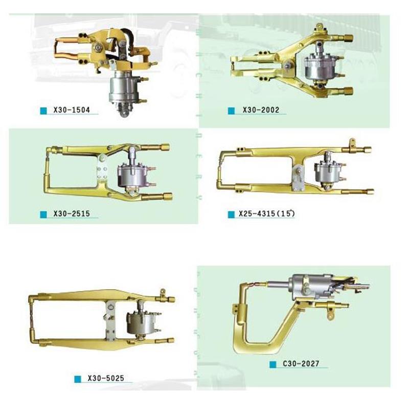 1.分体式悬挂点焊机由焊钳,焊接机变压器,焊接机控制器,水冷却系统,气压系统,悬挂装置等构成。点焊机电极臂使用优质铬锆铜(CuCrZr-1),以保证焊接性能的稳定性,焊机的使用寿命以及电极臂的强度。