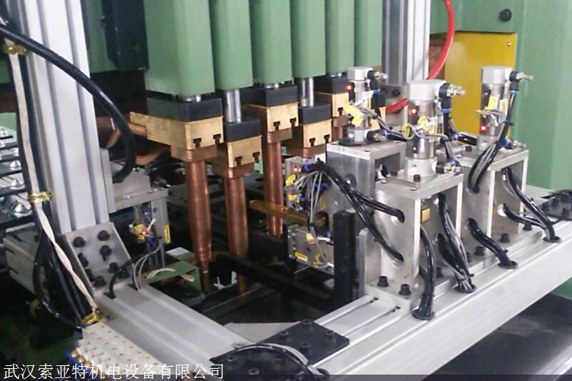龙门型多点焊接机通过龙门架,双中频逆变焊接变压器,气动传动装置,伺服电机输送线体,电气控制系统,冷却系统和PLC连接。触摸屏操作系统控制系统。