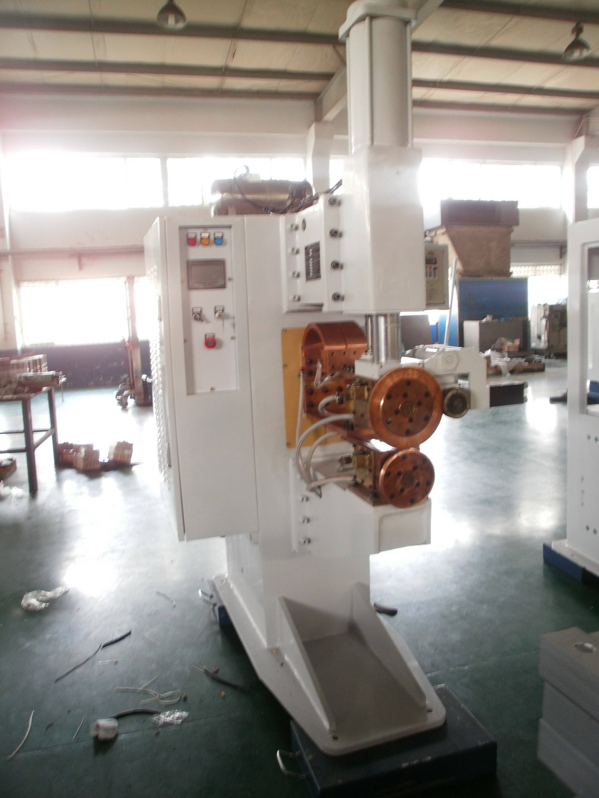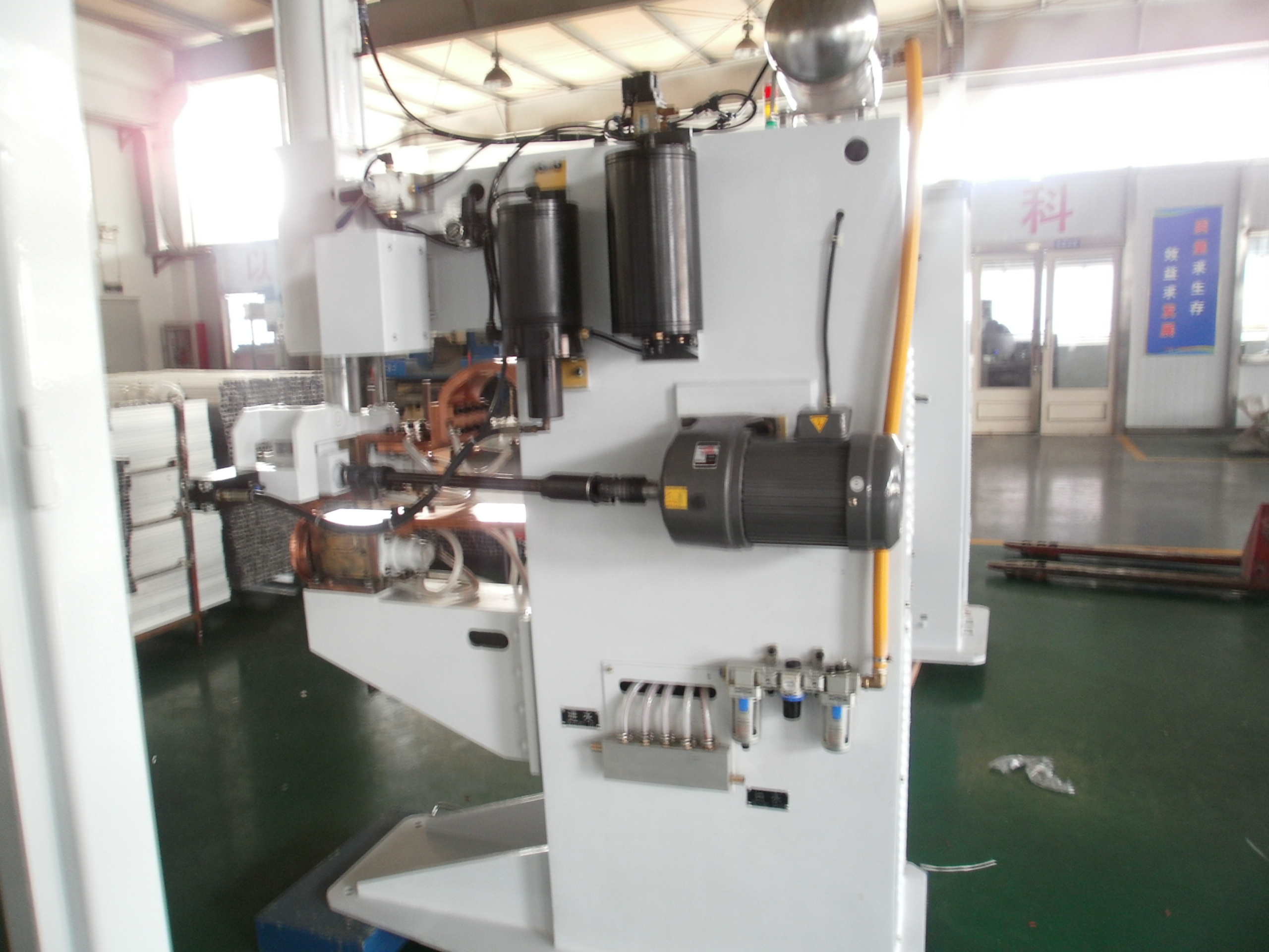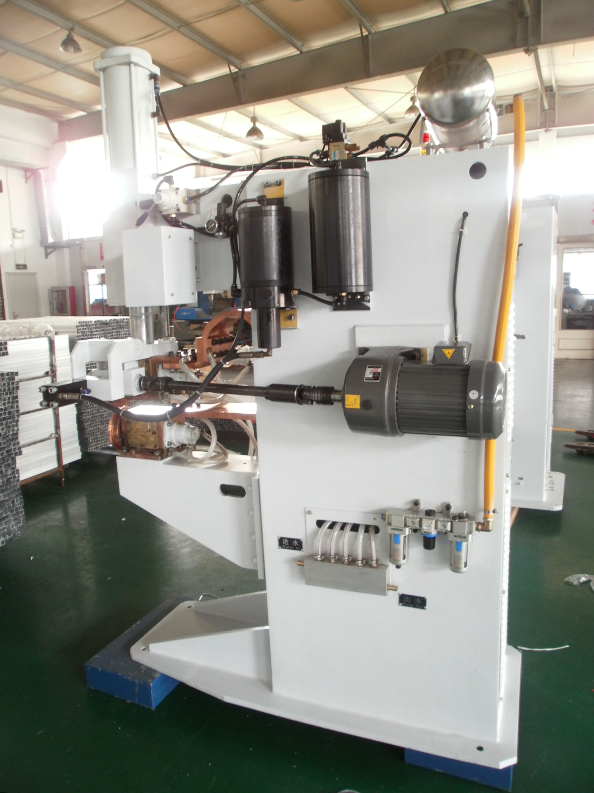 5.直缝焊,焊缝轮的方向是纵向的,电机动力由锥齿轮驱动,驱动焊头。